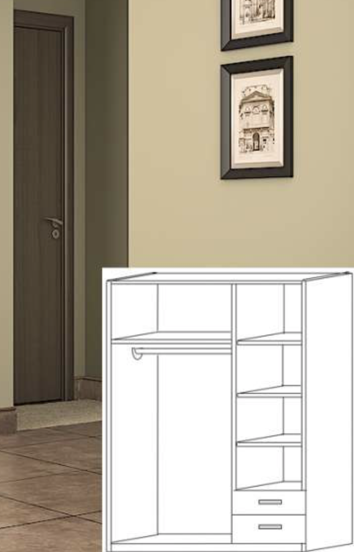 Шкаф трехстворчатый ШК-303 без зеркала - за счёт продуманной внутренней эргономики такой вариант вмещает большое количество одежды, а также сэкономит бюджет семьи. Внутреннее содержимое: Штанга + Полки.